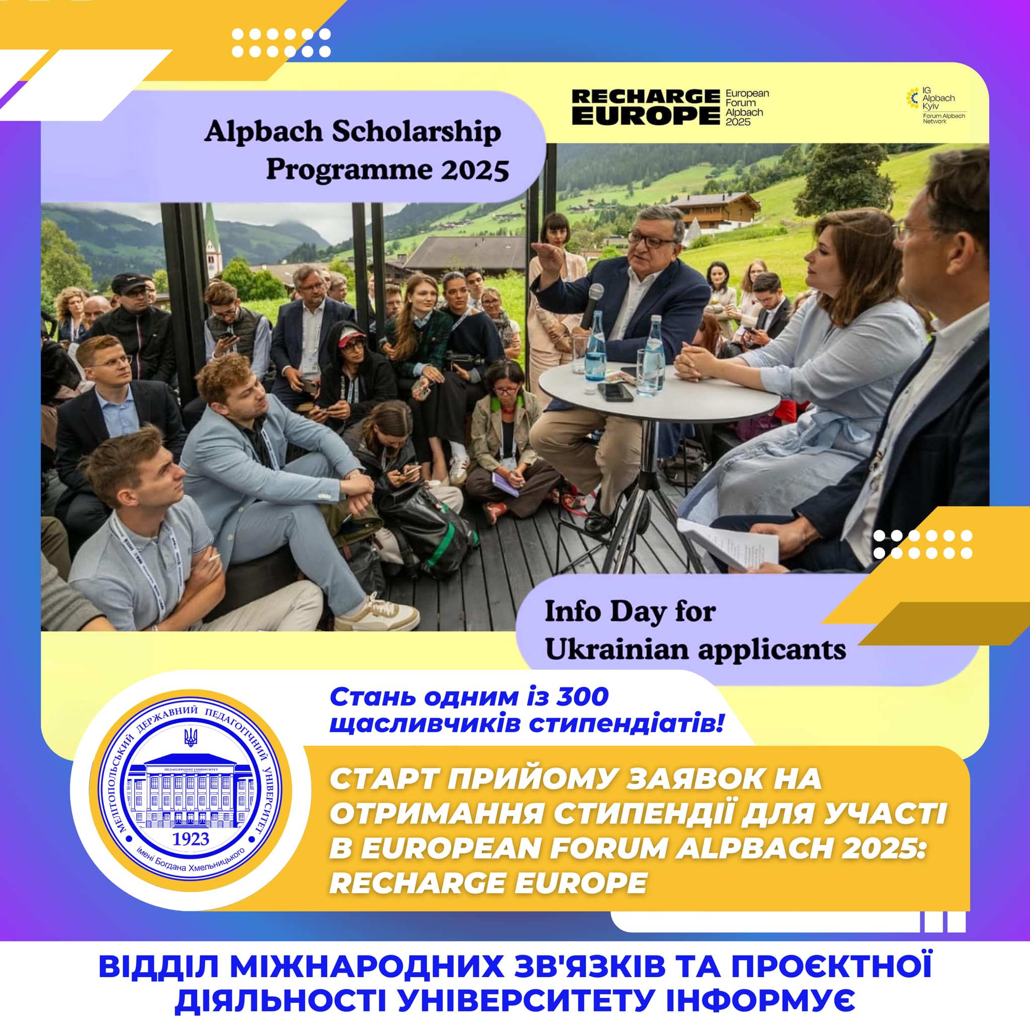 3 березня стартує прийом заявок на отримання стипендії для участі в @forumalpbach European Forum Alpbach 2025: Recharge Europe!