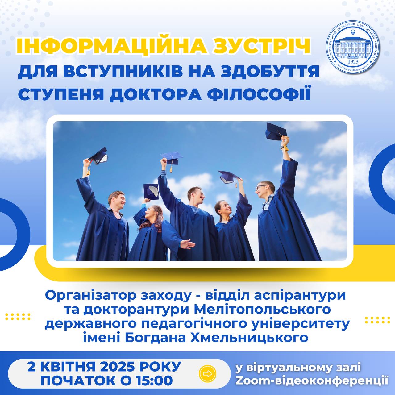 Мелітопольський державний педагогічний університет імені Богдана Хмельницького запрошує випускників магістратури та всіх охочих долучитися до
