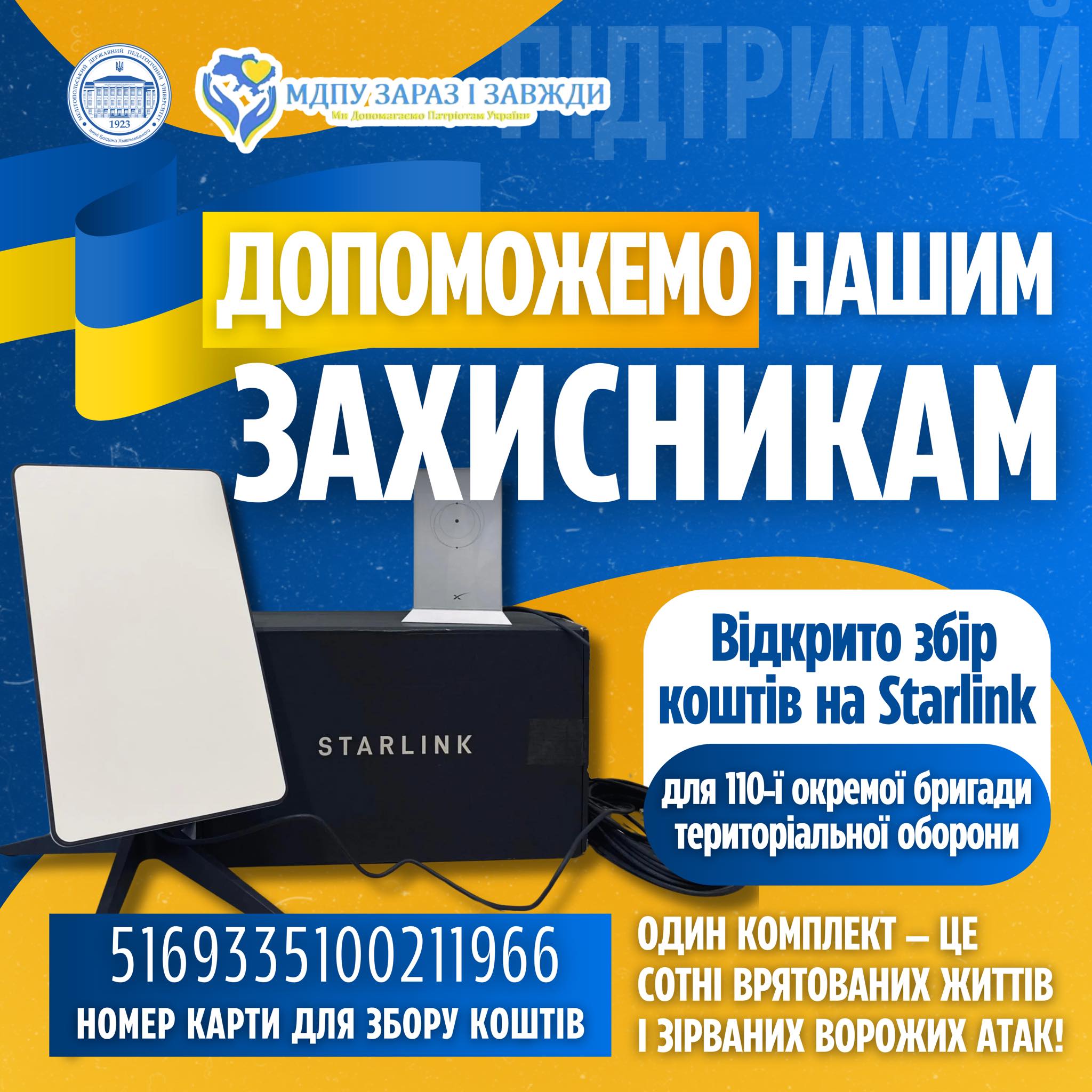 ВІДКРИТО ЗБІР КОШТІВ НА STARLINK ДЛЯ ЗСУ!