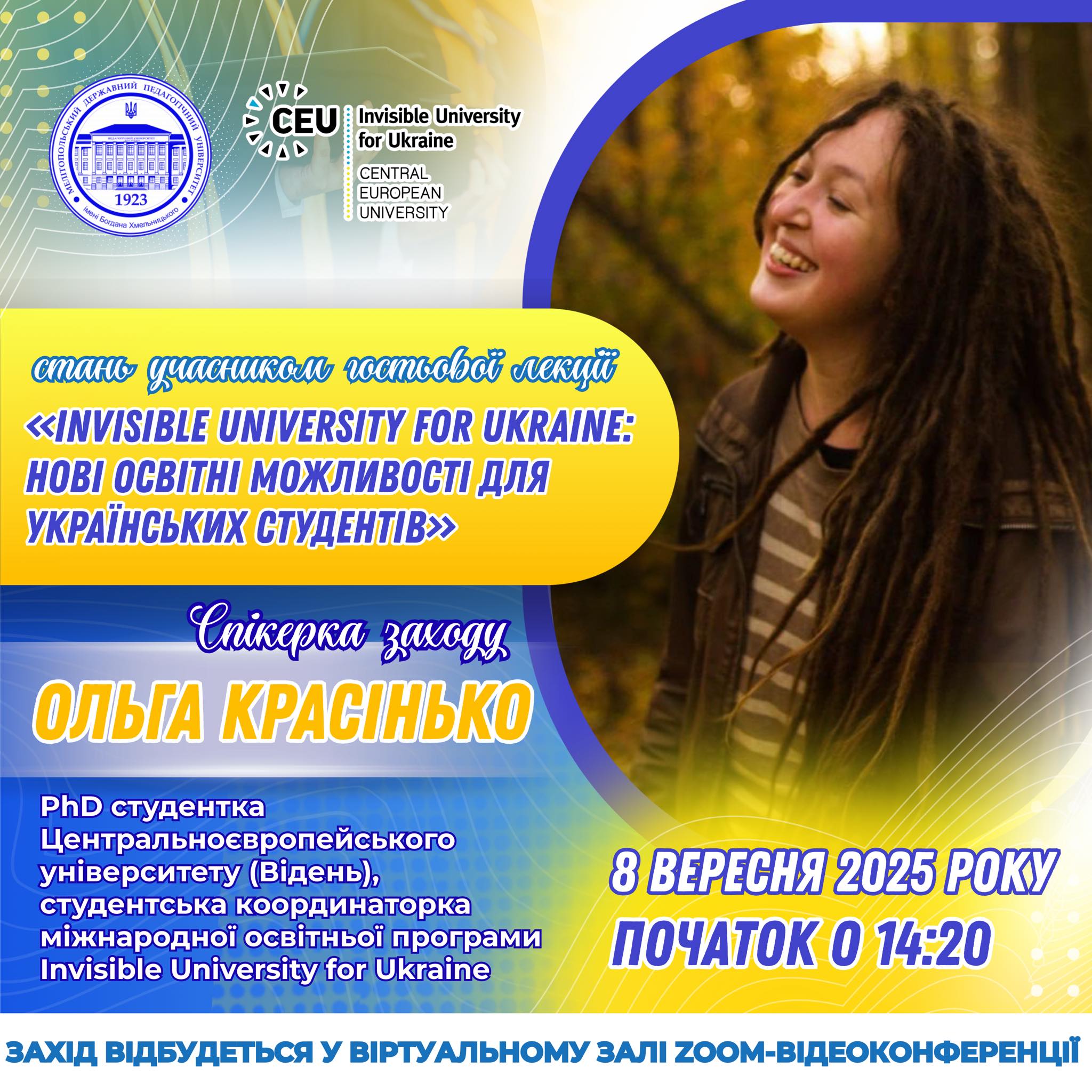 Кафедра історії та археології Мелітопольського державного педагогічного університету імені Богдана Хмельницького запрошує стати учасниками унікальної гостьової лекції. Тема: «Invisible University for Ukraine: нові освітні можливості для українських студентів»
