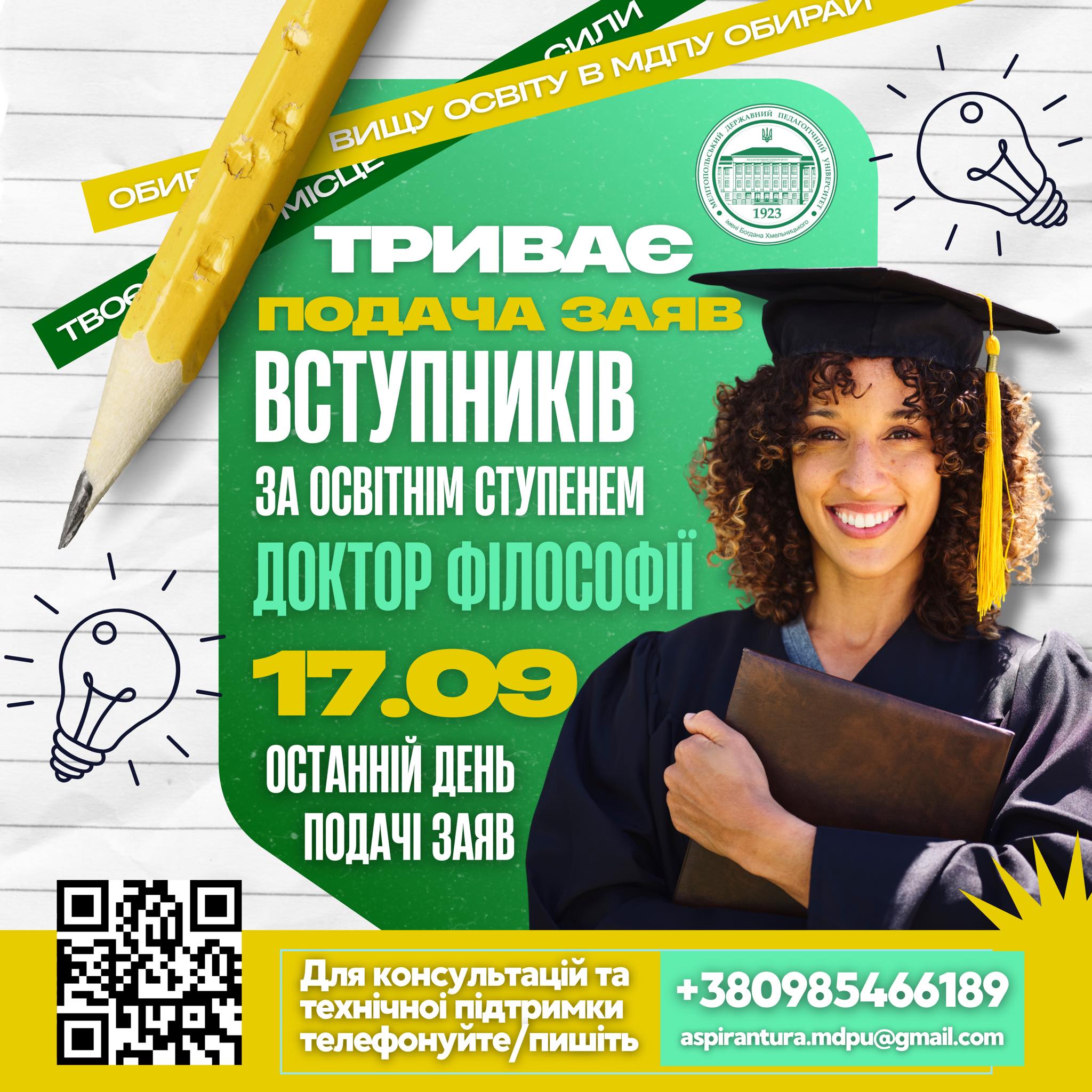 ПОДАЧУ ЗАЯВ ДО АСПІРАНТУРИ МДПУ ПРОДОВЖЕНО!