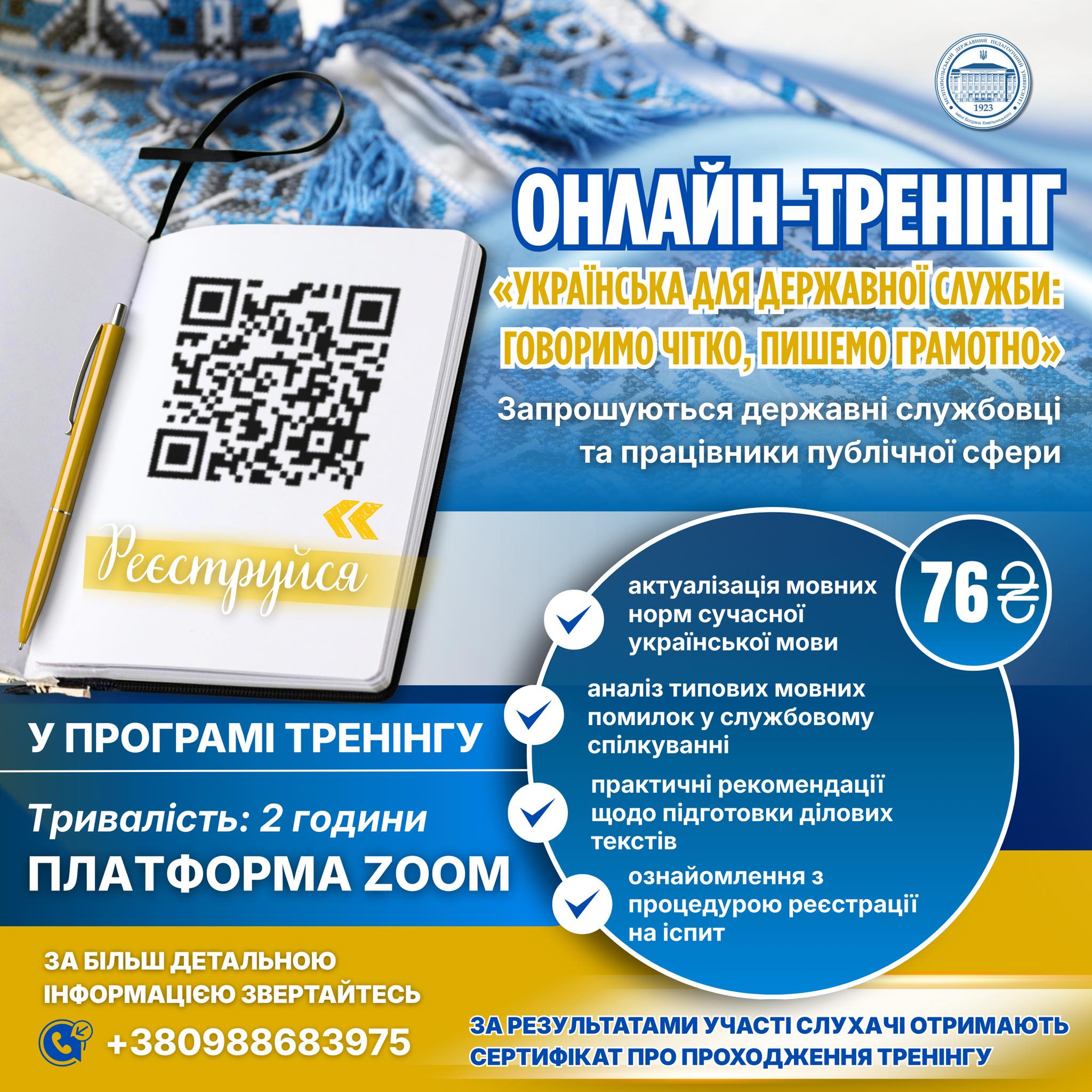 «Українська для державної служби: говоримо чітко, пишемо грамотно».