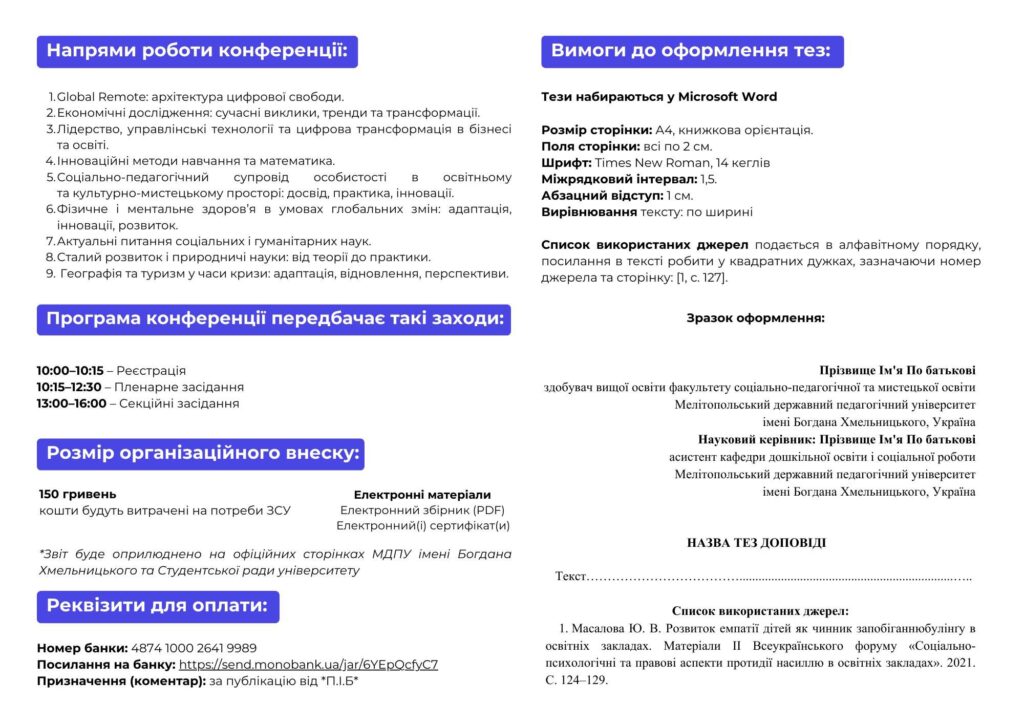 Детальна інформація щодо участі та вимог до оформлення матеріалів подана в інформаційному листі.
