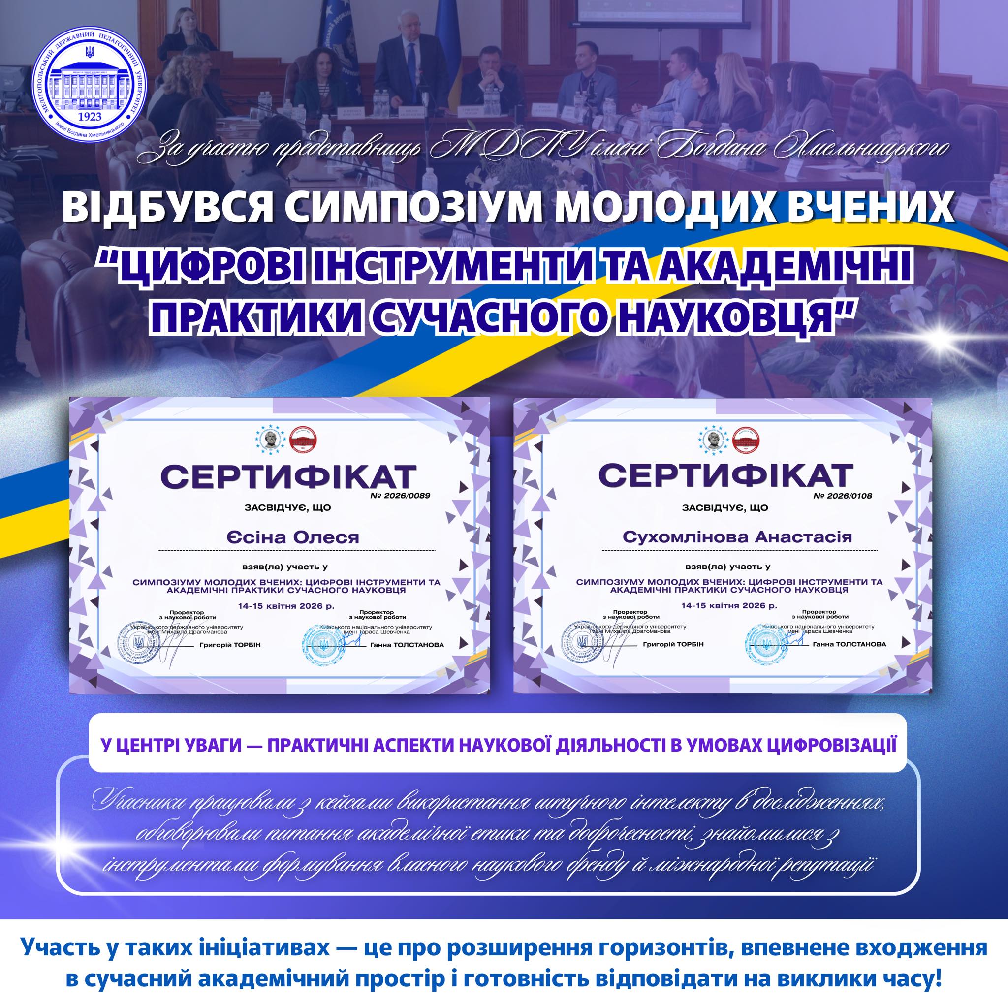 Саме таку атмосферу об’єднав Симпозіум молодих учених «Цифрові інструменти та академічні практики сучасного науковця», що відбувся 14–15 квітня 2026 року та зібрав активну молодіжну наукову спільноту з усієї України.