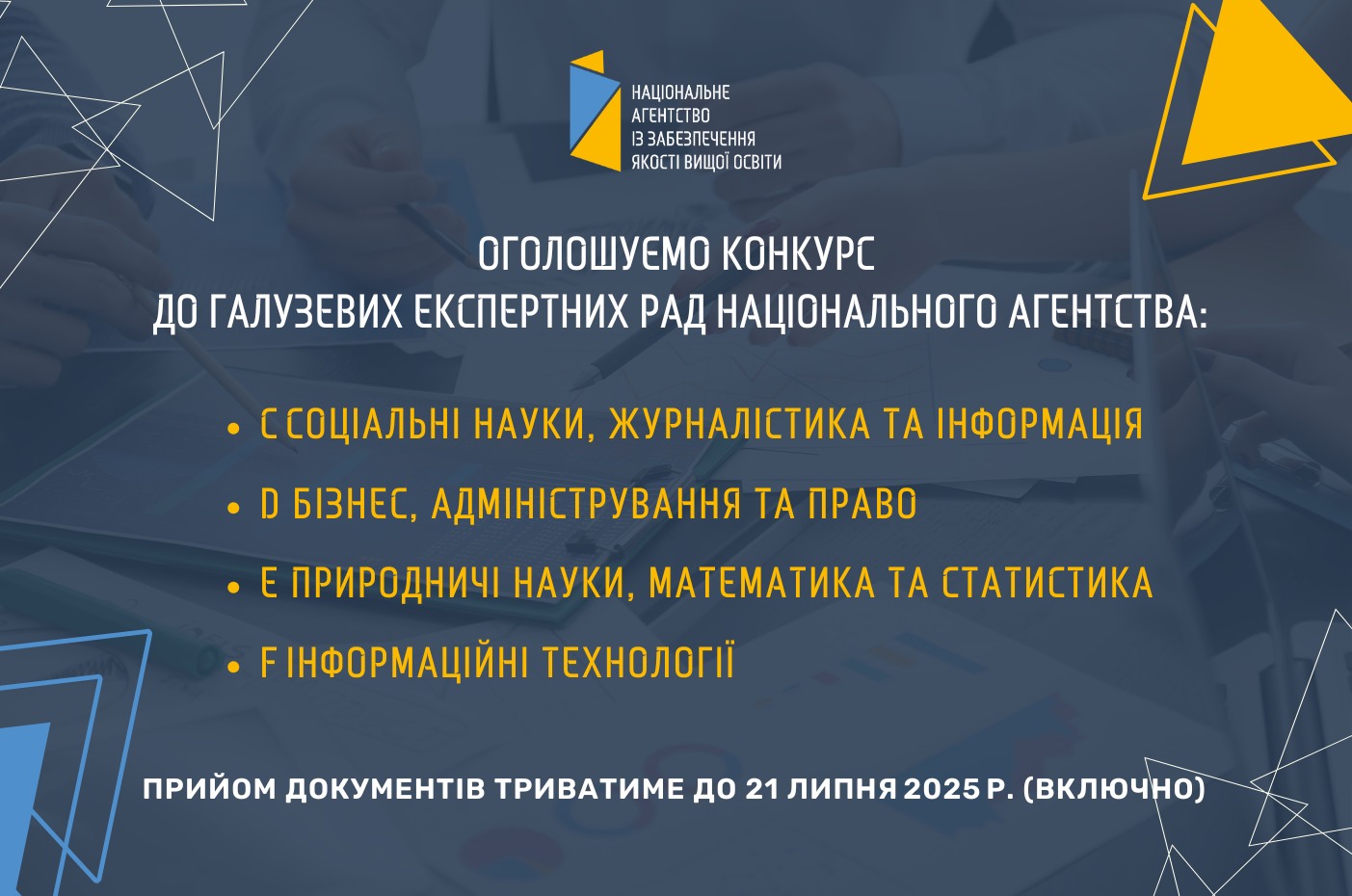 З 30 червня 2025 р. оголошується конкурс до галузевих експертних рад Національного агентства: