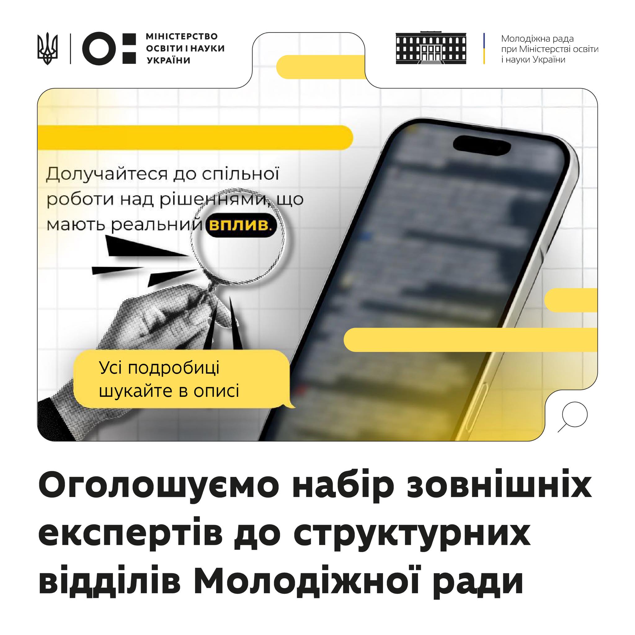 Запрошуємо молодь віком від 14 до 35 років (включно), яка має експертизу, практичний досвід і бажання долучитися до формування рішень державної політики у сферах освіти і науки, наукової, науково-технічної, а також інноваційної діяльності. Формат участі: зовнішні експерти залучаються на громадських засадах та безоплатній основі, з можливістю гнучкого формату роботи (онлайн / офлайн залежно від завдань)....Read More