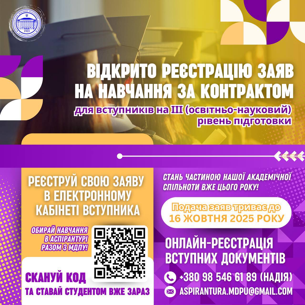 МДПУ імені Богдана Хмельницького відкриває двері для вступників на ІІІ (освітньо-науковий) рівень підготовки. Це твій шанс стати частиною сильної академічної родини, розвивати науковий потенціал та здобути освіту, яка відкриває нові горизонти! Кінцевий термін подання заяв – 16 жовтня (включно). Подати заяву можна через електронний кабінет вступника. Пакет документів надсилайте поштою. Не втрать можливість обрати університет,...Read More