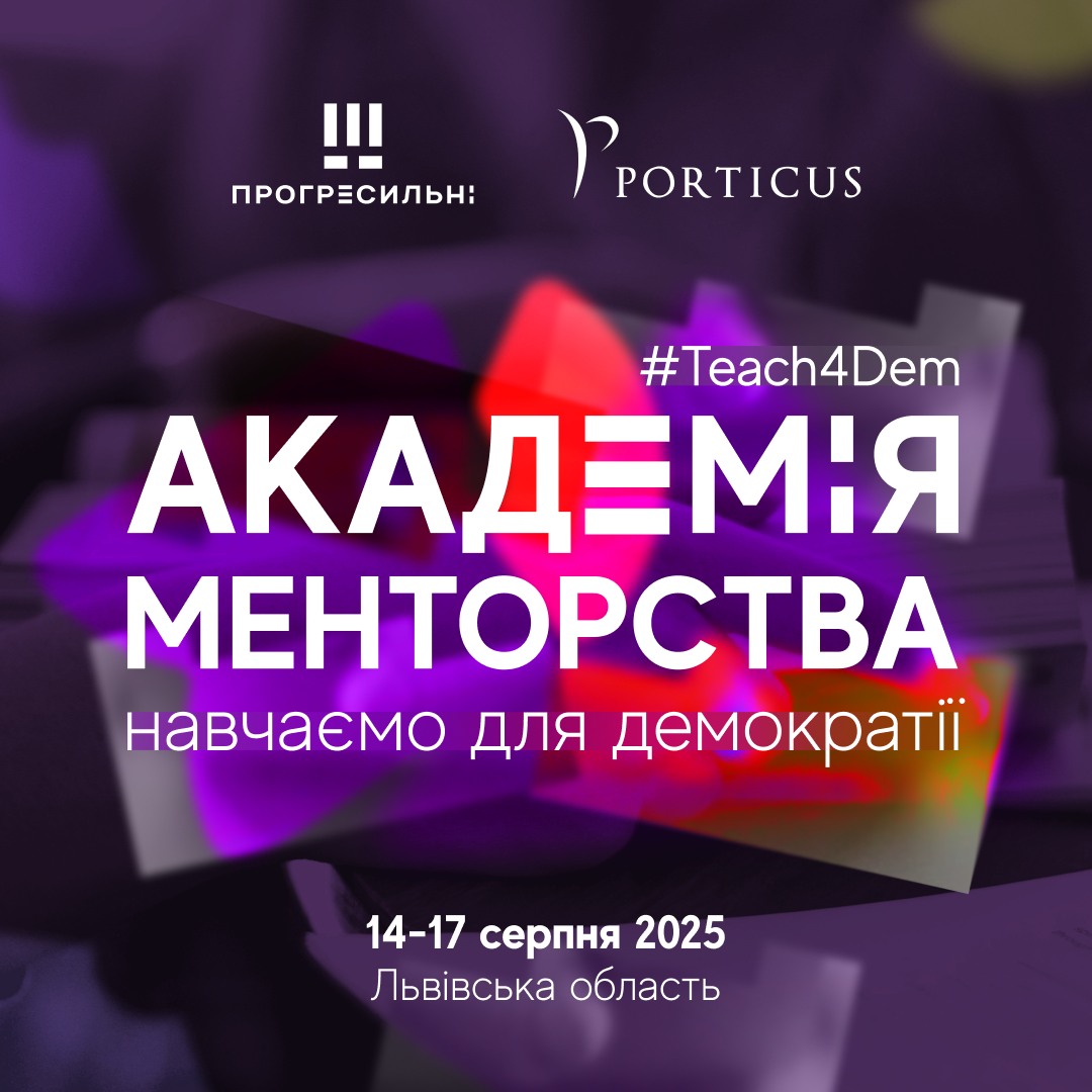 ГО «Прогресильні» запускає новий напрям #Teach4Dem – ініціативу, спрямовану на зміну підходів у формальній освіті до викладання основ демократії, партисипації, критичного мислення, а також залучення молоді до прийняття рішень на місцевому рівні. Академія менторства. Навчаємо для демократії Це чотириденний освітній простір для викладачів і викладачок різних рівнів освіти, які прагнуть: опанувати менторський підхід та глибше...Read More