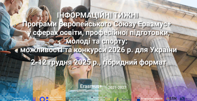 Національний Еразмус+ офіс в Україні спільно з Представництвом ЄС в Україні, Міністерством освіти і науки України, Міністерством молоді та спорту України, Національним офісом підтримки Програми eTwinning, Інформаційним центром Еразмус+ молодь та Європейського корпусу солідарності, Erasmus Student Network – Ukraine та Erasmus Mundus Association – Ukraine запрошують 2-12 грудня 2025 р. приєднатись до Інформаційних Днів Програми...Read More