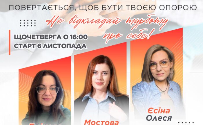 Група психологічної підтримки для студентів, викладачів та співробітників Університету повертається, щоб бути твоєю опорою! Після перерви ми відновлюємо роботу постійно діючої групи психологічної підтримки – простору, де можна виговоритися, знайти розуміння і трохи полегшення у складний час. Ці зустрічі – для тих, хто потребує тепла, хоче поділитися тим, що всередині, або просто шукає людей, які...