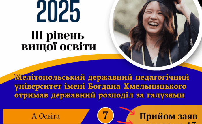 Мелітопольський державний педагогічний університет імені Богдана Хмельницького запрошує вас взяти участь у ІІІ Міжнародній науково-практичній конференції «Сучасна вища освіта: досягнення, виклики та перспективи розвитку в умовах невизначеності» Дата: 10-11 жовтня 2025 року Місце проведення: Запоріжжя, змішаний формат Мета конференції: об’єднати науковців, освітян, управлінців та студентів для обговорення актуальних досягнень системи вищої освіти, визначення ключових викликів...