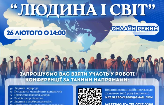 Мелітопольський державний педагогічний університет імені Богдана Хмельницького запрошує взяти участь у ХІІ регіональній науково-практичний конференції «ЛЮДИНА І СВІТ»! Напрями роботи конференції: Людина і природа. Психологія молодіжних конфліктів. Проблеми дозвілля молоді....