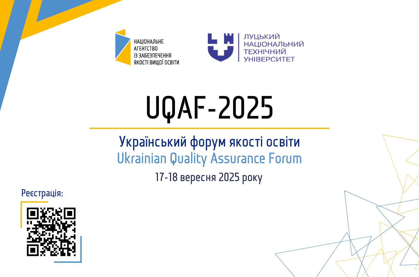 17-18 вересня 2025 року Національне агентство із забезпечення якості вищої освіти у партнерстві з Луцьким національним технічним університетом проводить у місті Луцьк Український форум якості освіти (UQAF-2025, Ukrainian Quality Assurance Forum). UQAF – найбільша в Україні комунікаційна платформа для обговорення актуальних питань розбудови системи забезпечення якості вищої освіти та повʼязаних з цим питань. До участі...Read More